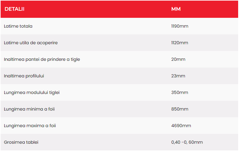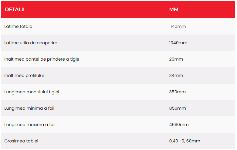 Longevitatea este data de materia prima din care este produsa tigla metalica.